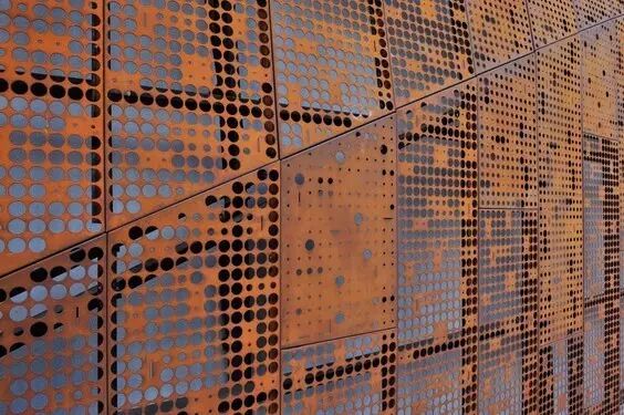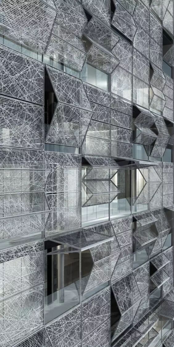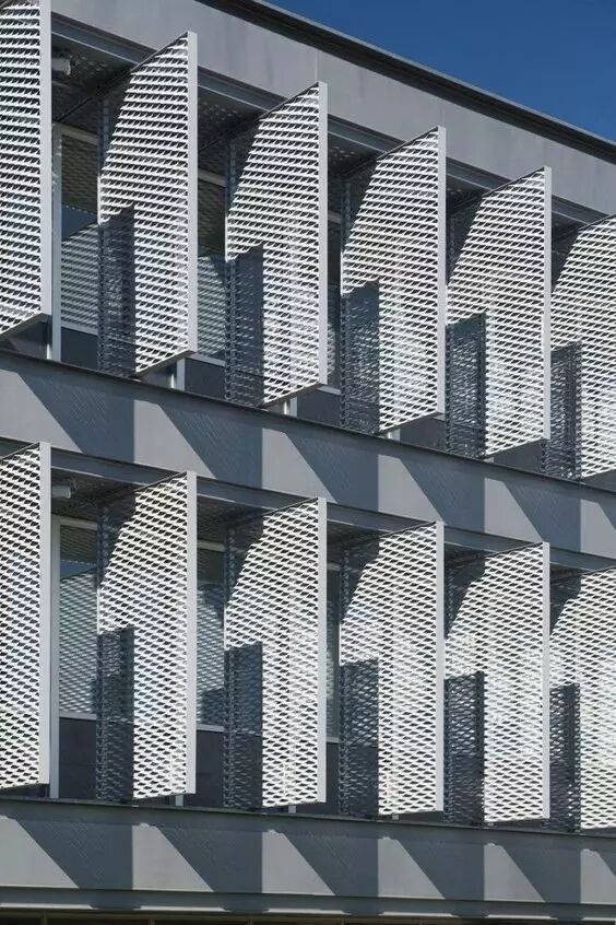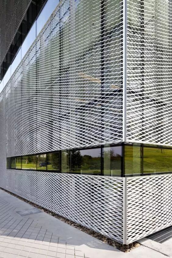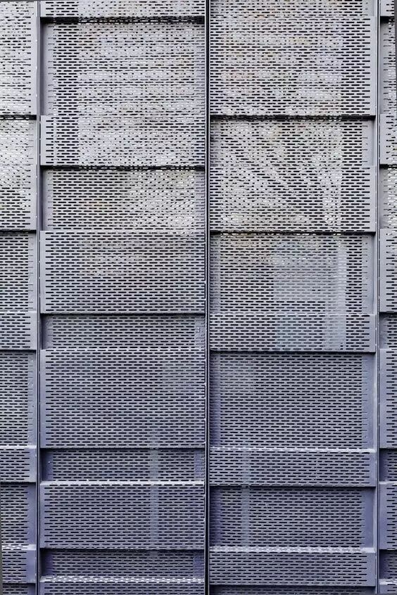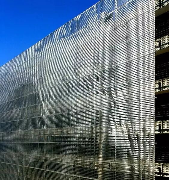 由于材料的发展以及建筑师的追求,穿孔铝板作为一种新兴的建筑外表皮材料,在建筑上到更广泛的应用。穿孔铝板因其能够在城市街道空间和建筑内部之间形成半透明的界面,且不会过多影响建筑内部的使用要求,同时可以统一立面效果,形成完整、有秩序的城市界面,其便捷且多变的艺术造型,越来越多的受到诸多设计师的青睐。